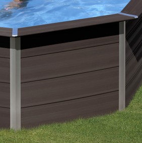 Disponibili nelle forme tondeggianti ed ovali, sono composte da una struttura in pannelli premontati, per semplificarne ulteriormente l’installazione, tenuti uniti da profili verticali in acciaio, completi di giunti angolari in alluminio. Anche la scaletta esterna è in legno wpc, per assicurare armoniosità a tutta la vasca.
